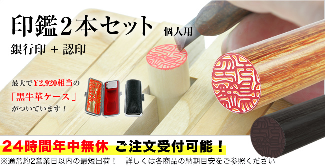 個人用 印鑑 2本セット 銀行印 認印印鑑・実印・はんこ通販 唯一の20年保証・送料無料 印鑑市場。