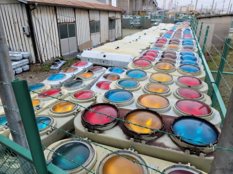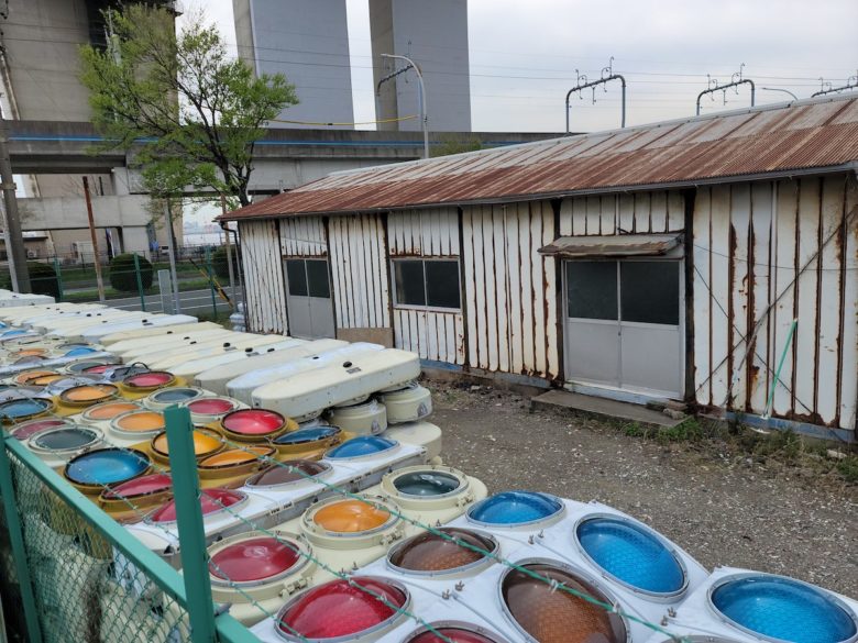 信号機の墓場の現在。廃止された信号機が集結するスポット 金城ふ頭交番。