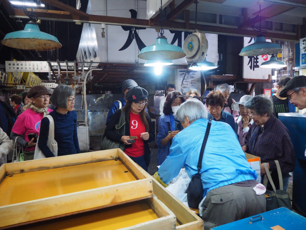 築地市場はフロアで湧いています。
