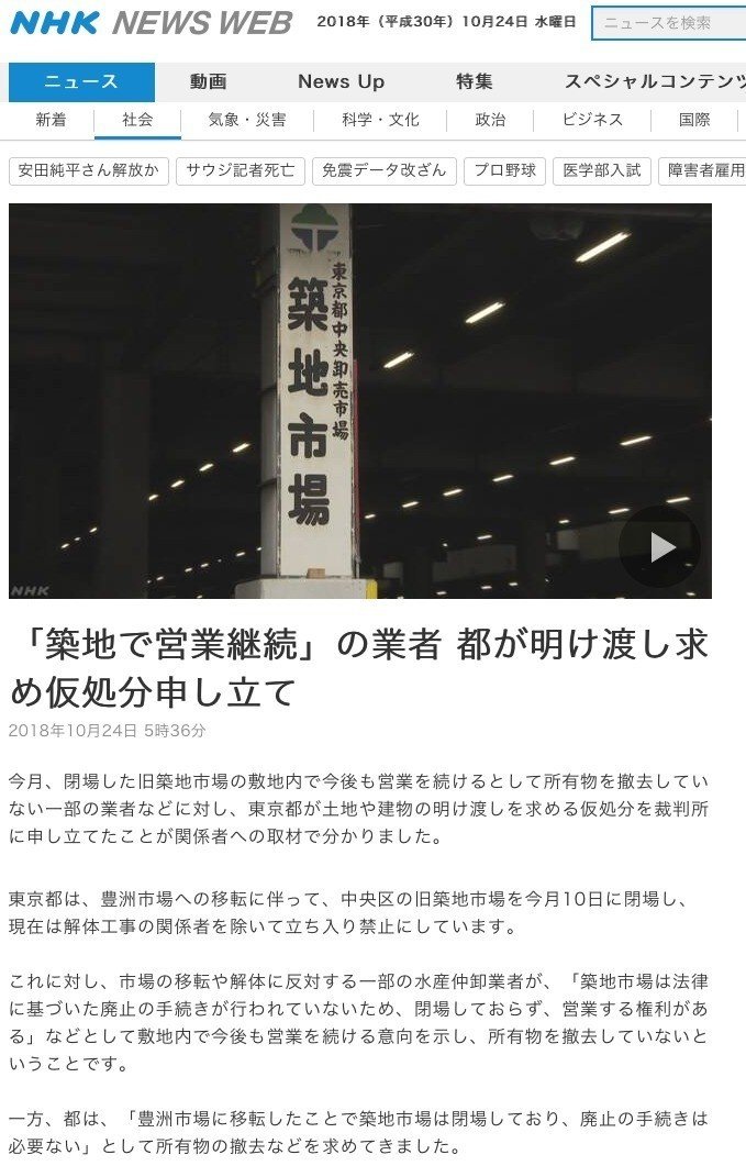 NHKの真っ赤な嘘 2018年10月24日 築地市場について伝えるニュース犬飼淳Jun Inukai。