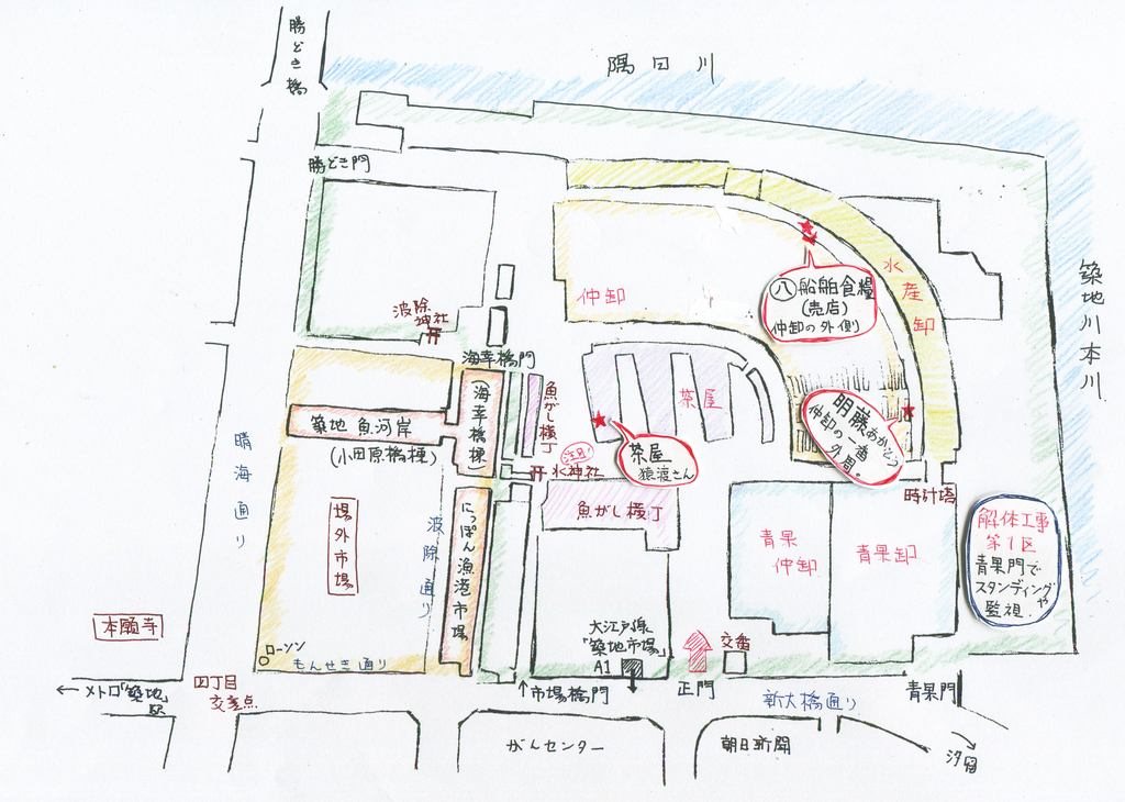 閉場 地下鉄築地市場駅A1出口から「築地市場」魚がし横丁までの行き方ほぼ備忘録☀ 関心は食と旅と昼寝。