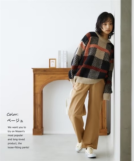 ベージュパンツコーデ地味見えしないベージュコーデとベージュに合う色を解説ニッセン。