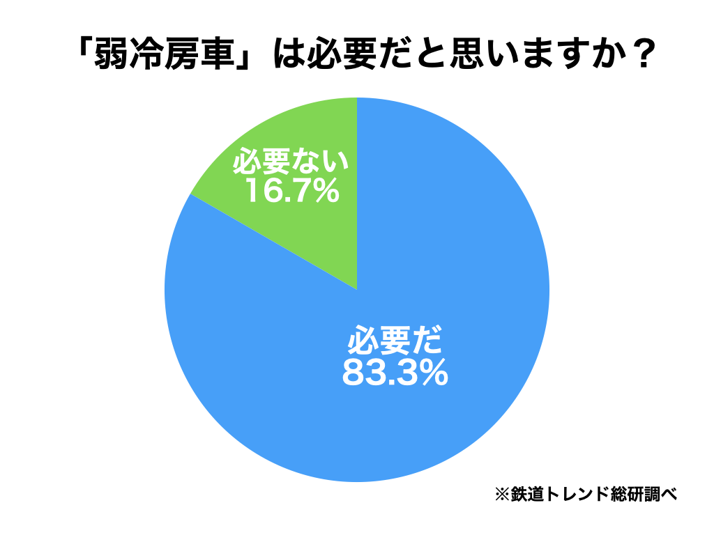 夏の「弱冷房車」暑い日でも83.3%の人が「必要だ」と回答鉄道トレンド総研。