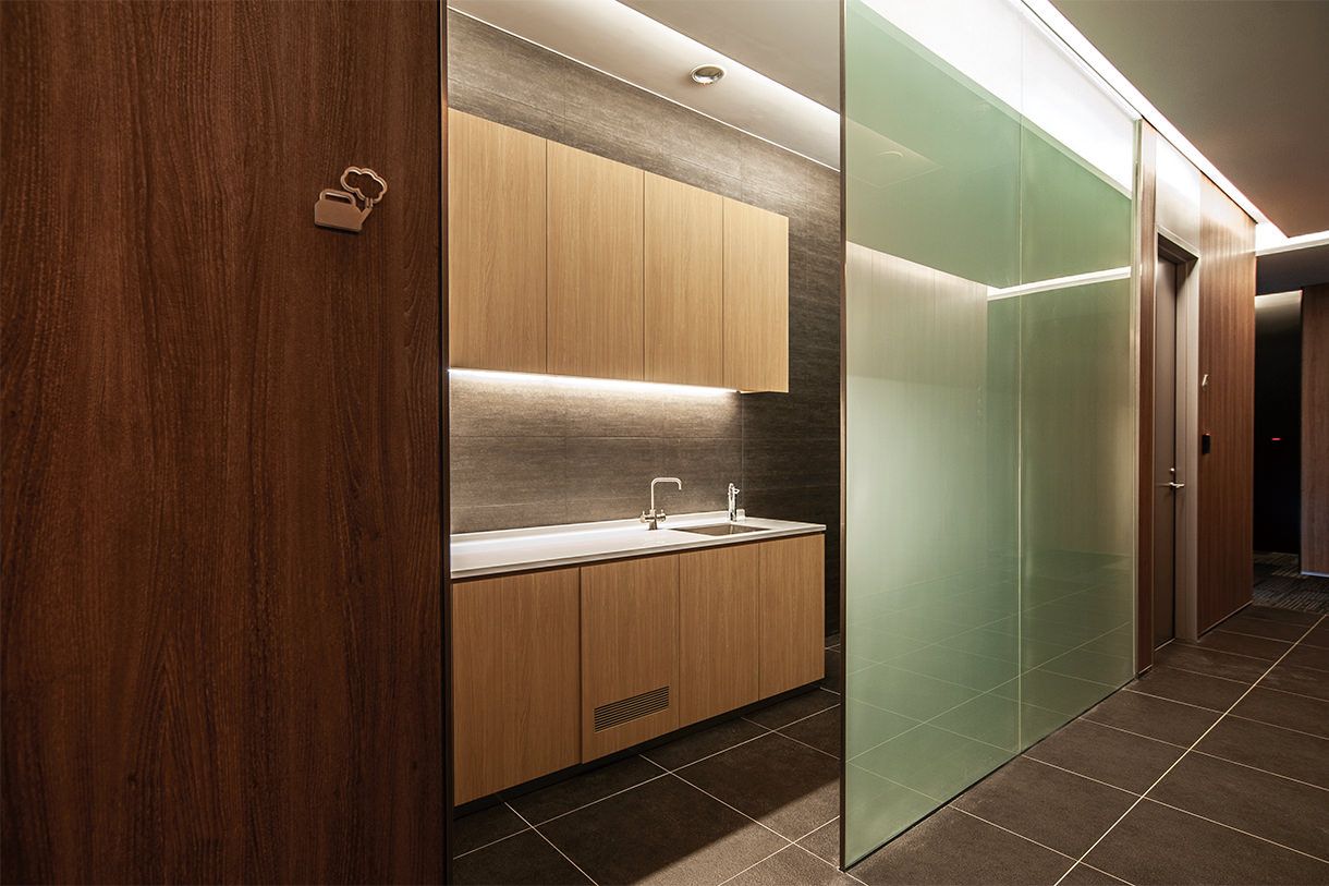 給湯室日研オフィスギャラリー日研硝子株式会社。