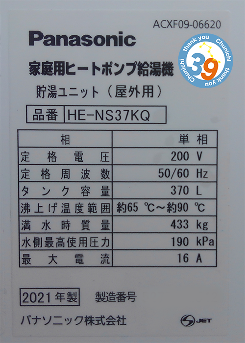 東海地区 エコキュート交換 地域最速 Panasonicエコキュート HE-NS37KQS 角型フルオートタイプ 三重県エコキュートのことなら中日設備 給湯器交換は最短即日対応!中部、九州、関東。