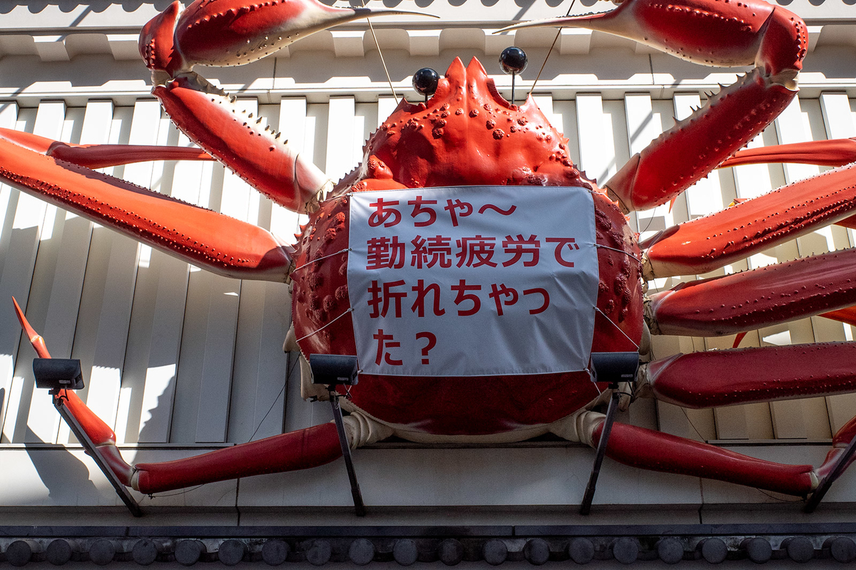 道頓堀「かに道楽」の巨大看板が修理「脚が2本食われてる」Lmaga.jp。