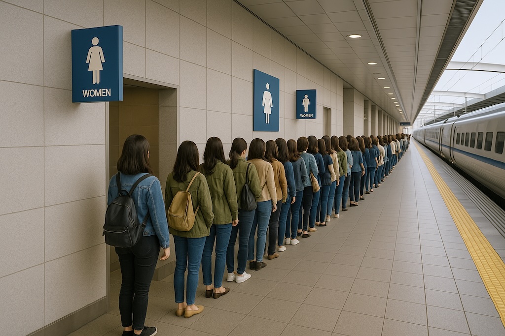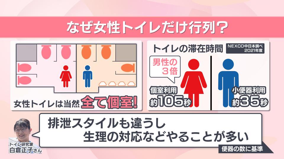 女性トイレだけ行列、なぜ?「男性便器は1.76倍」記者も調べると。