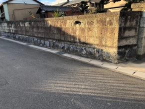 倒壊の危険性があるブロック塀てら岡不動産有限会社。