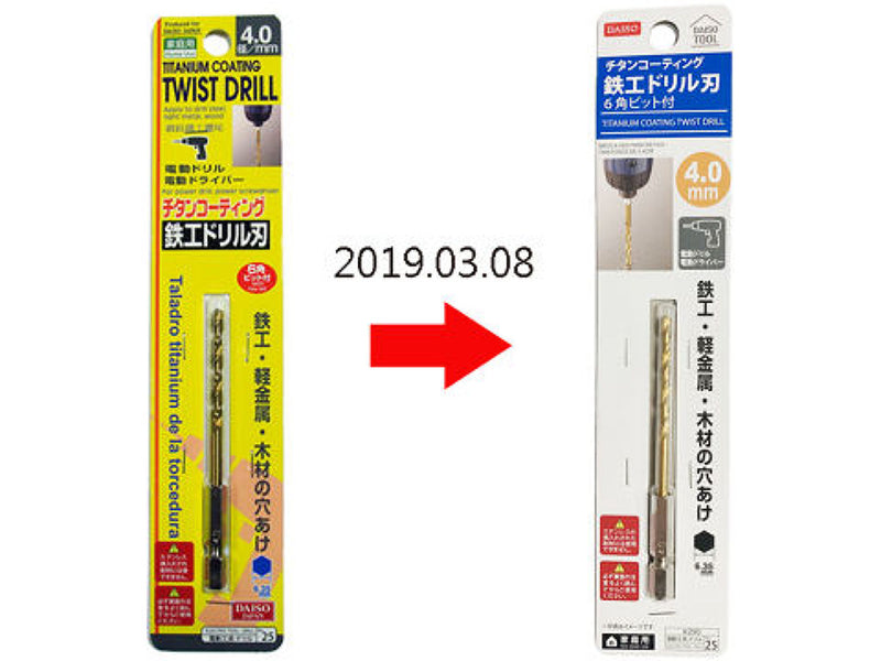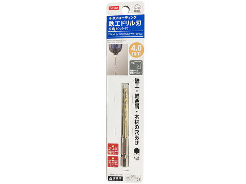 チタンコーティング鉄工ドリル刃4.0mm6角ビット付 -100均 通販 ダイソーオンラインショップ 公式。