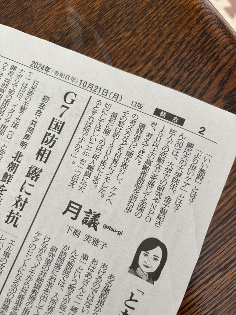 活動報告 007 毎日新聞 全国版・朝刊 に紹介されました!!「ケアするされる」から「ともに生きる」社会へacademistアカデミスト。