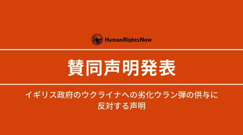 賛同表明 イギリス政府のウクライナへの劣化ウラン弾の供与に反対する声明特定非営利活動法人ヒューマンライツ・ナウのプレスリリース。