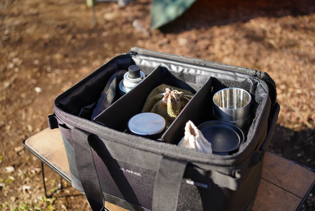 仕切り付きでギアの収納に便利なANOBAのソフトコンテナ マルチギアボックスHave a good camp。