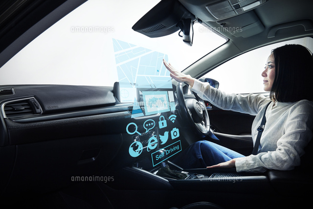 自動運転車に乗る女性 10179013783 の写真・イラスト素材アマナイメージズ。