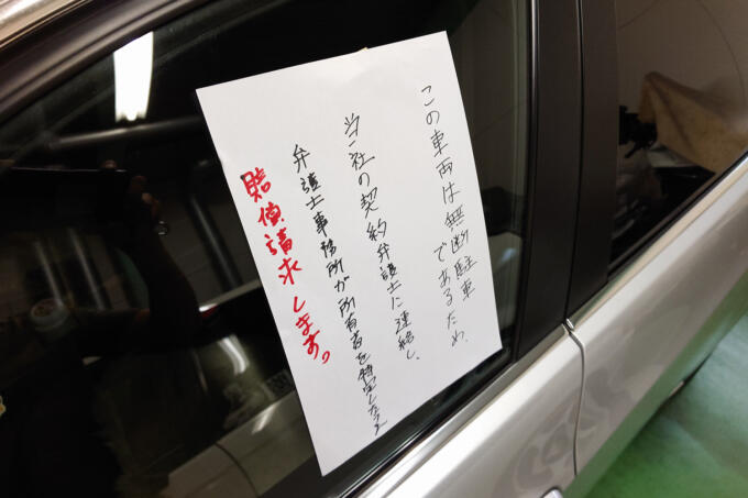 Step2 警告書を貼る - 撤去の流れ - 放置自動車110番 ビッグエイト。
