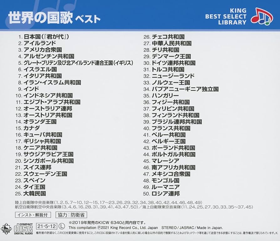 Amazon.co.jp: 世界の国歌 ベスト キング・ベスト・セレクト・ライブラリー2021: Music。