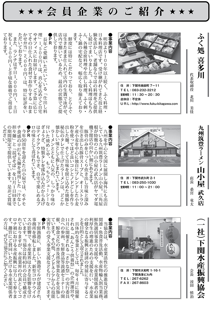 ふく処 喜多川・九州筑豊ラーメン山小屋 武久店・ 一社 下関水産振興協会-下関商工会議所。