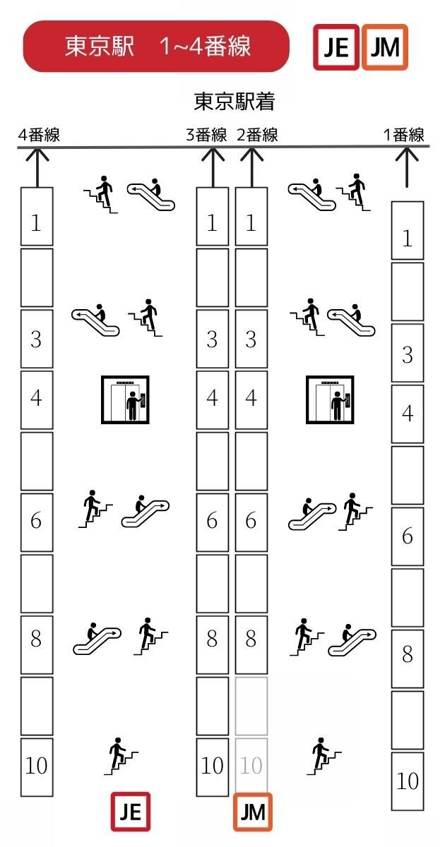 東京駅 京葉地下1~4番ホーム:京葉線 武蔵野線 改札・出口に近い乗車位置 - SAKUNORI。