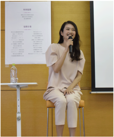 当学院イメージキャラクター田中道子さんが新潟工科大学オープンキャンパスで特別講演。