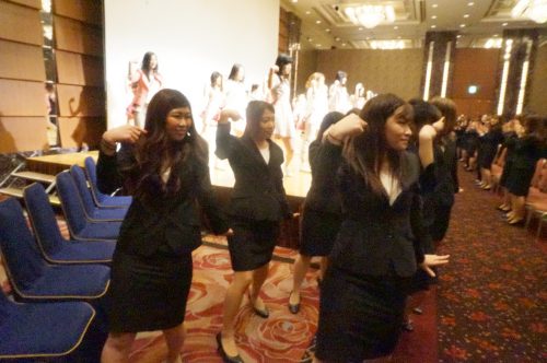 E-girlsがサプライズパフォーマンス、サマンサタバサ新入社員400名を歓迎。