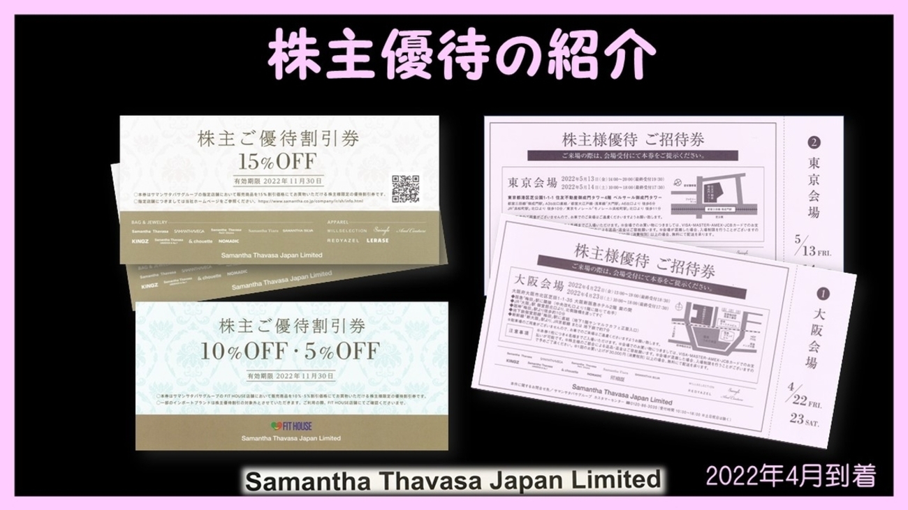 2月&8月権利確定 株主優待の紹介 サマンサタバサ 2022年4月到着 - i-papax's blog。