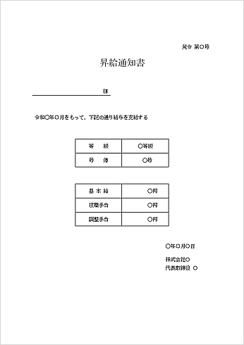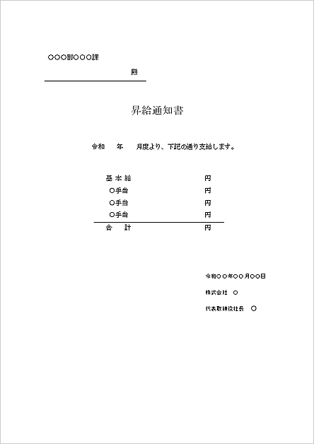 昇給通知書:社員に通知する書面のテンプレートを無料ダウンロード - 登録不要のフリーテンプレート。