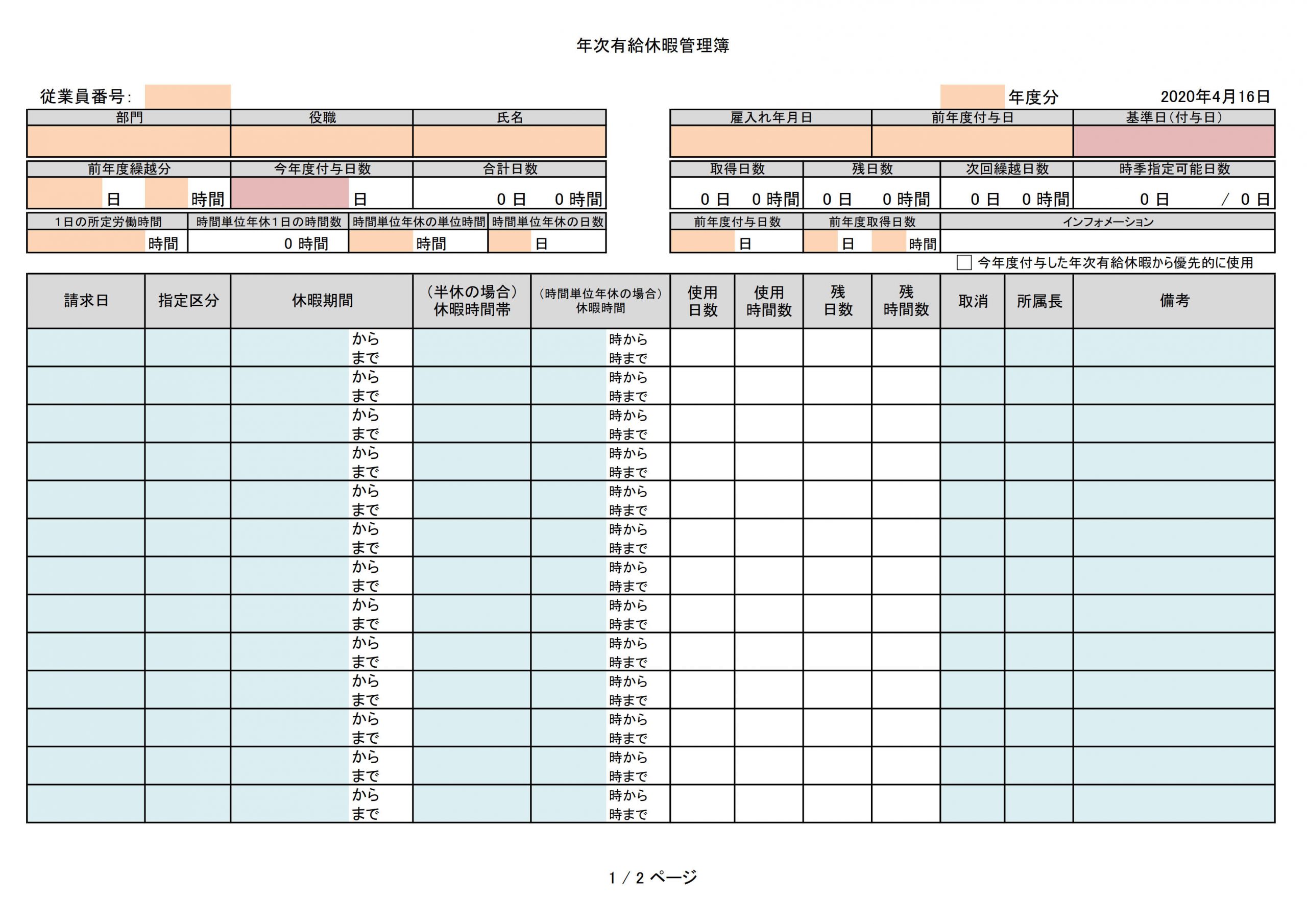 賃金台帳テンプレート02「備考欄付き」 エクセル・Excel 無料ダウンロードテンプレートNAVI。