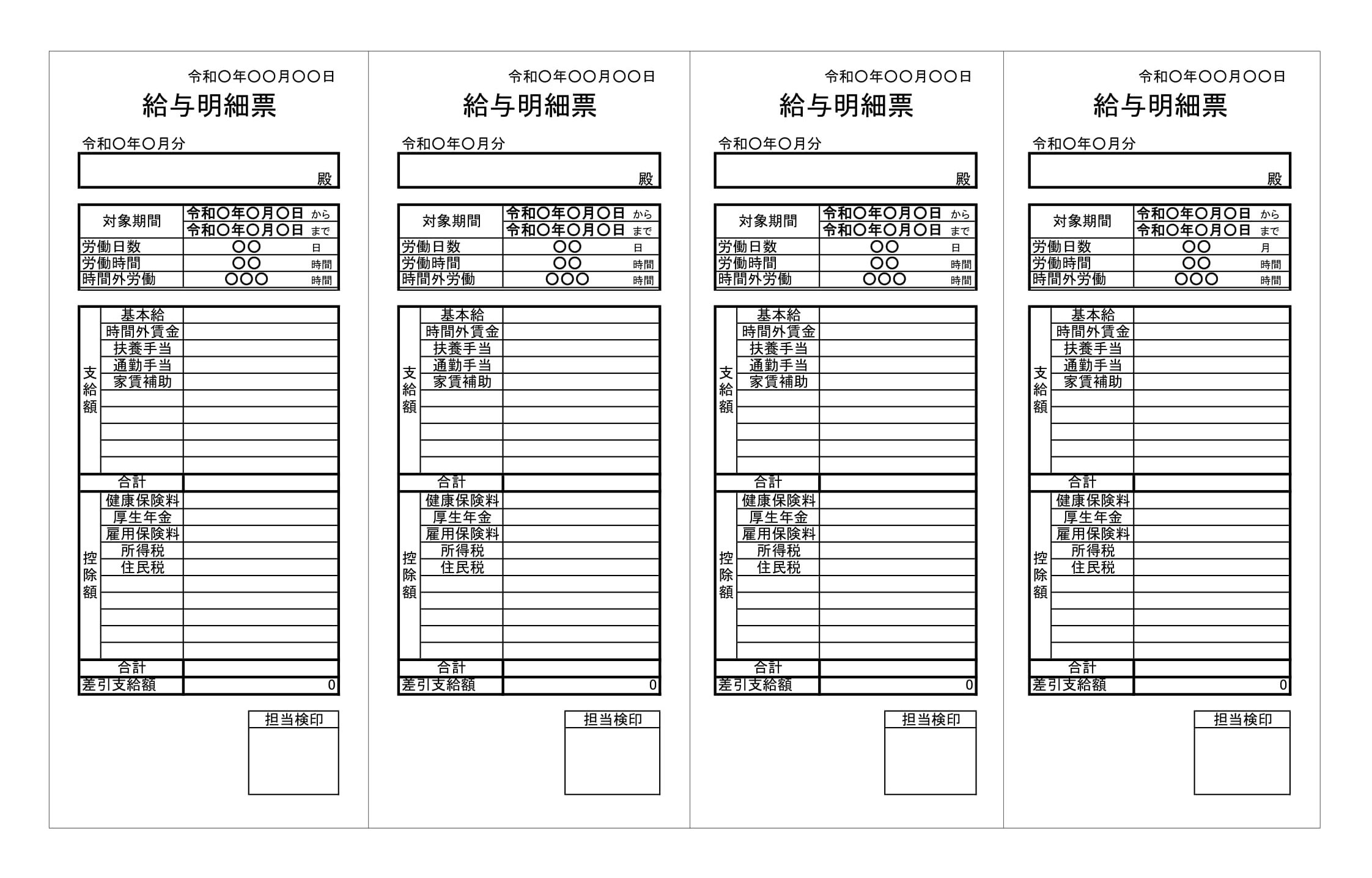 給料袋1月分明細付角8 労務 管理 エクセルテンプレート - 無料ダウンロード。