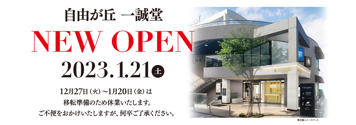 バナー_newopen_一誠堂_アートボード 1宝石・結婚指輪・高級時計・メガネ・コンタクトをお探しなら正規販売店 自由が丘一誠堂 isseido へ。