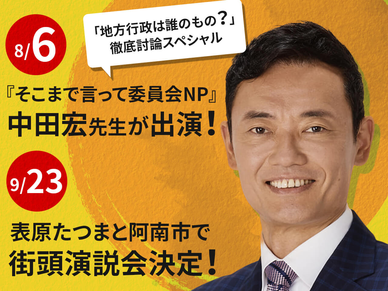 8 6 中田宏先生が『そこまで言って委員会NP』に出演!そして9 23には表原たつまと阿南市で再度演説会! - 表原たつま後援会。