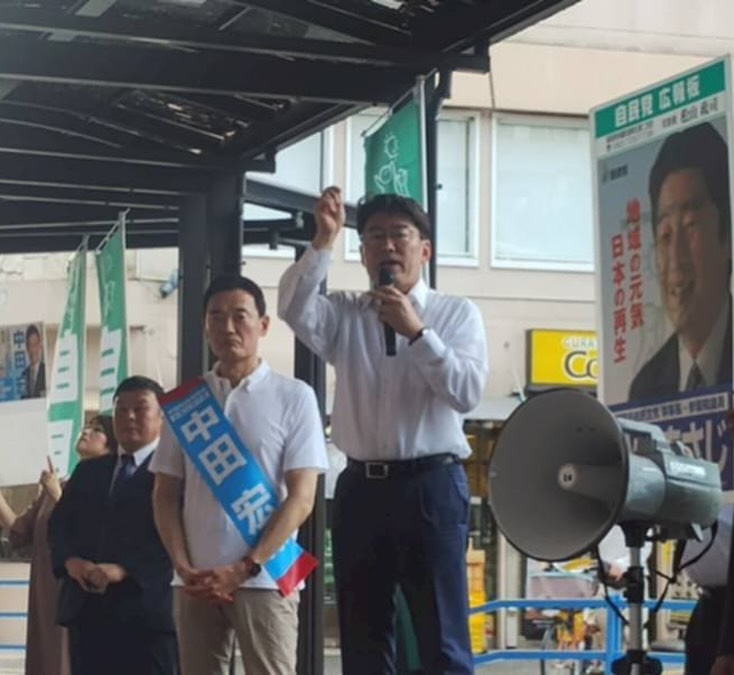 7月11日 中田宏候補、本人が朝から富山県内での選挙活動を行います。 環境副大臣、内閣府副大臣として政府の政策立案、実行に全力尽くす中田宏さん。父上の実家が富山市内であり、富山市の政策課題もこれまで常に気にかけ、解決に一緒に動いてくれる中田候補。 皆さん。
