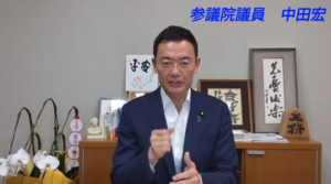 中田宏参議院議員より応援メッセージをいただきました。ありがとうございます!人こそ街なり 阪南市 上甲誠。