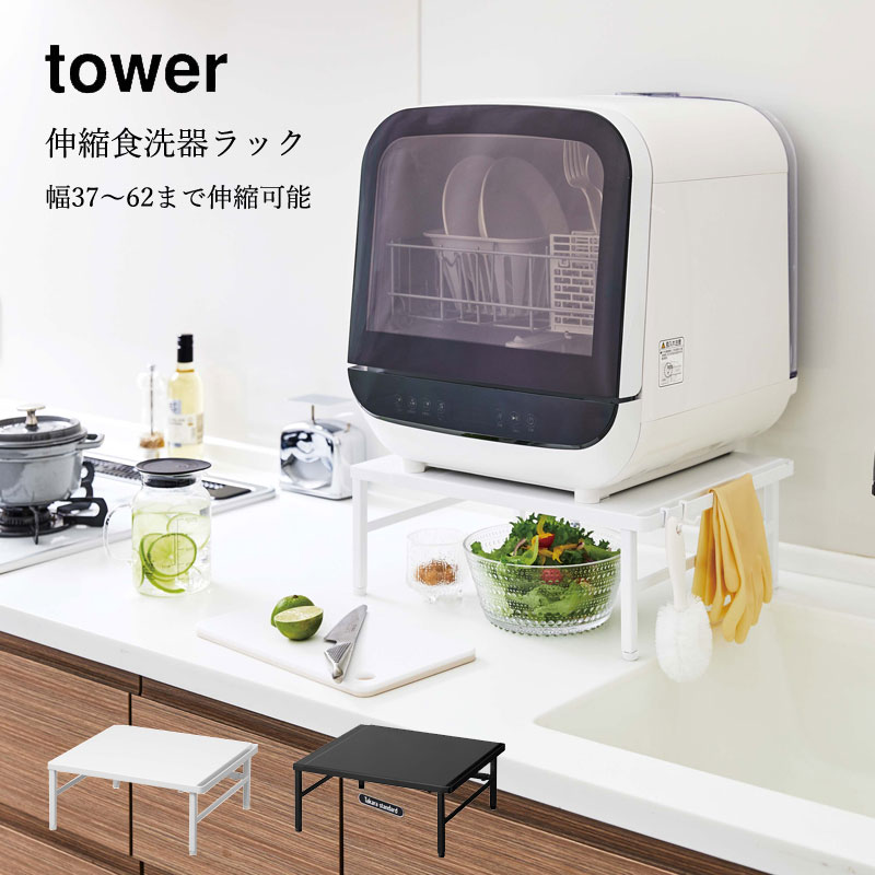 食洗機台 スライド式 食器乾燥機 ラック 食器洗い乾燥機 置き台 伸縮 幅37cm〜62cm おしゃれ 工事不要 頑丈 スチール シンク上耐荷重約60kg キッチンラック 山崎実業 yamazaki タワー tower 白 黒 伸縮食洗器ラックyz-5181-5182インテリア雑貨・生活雑貨・家具の通販。