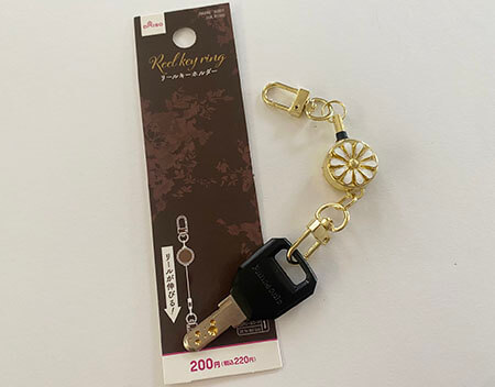 100均ダイソー・セリアにも「リール・スプリングキーホルダー」どこに売っている? - 100均マニア。