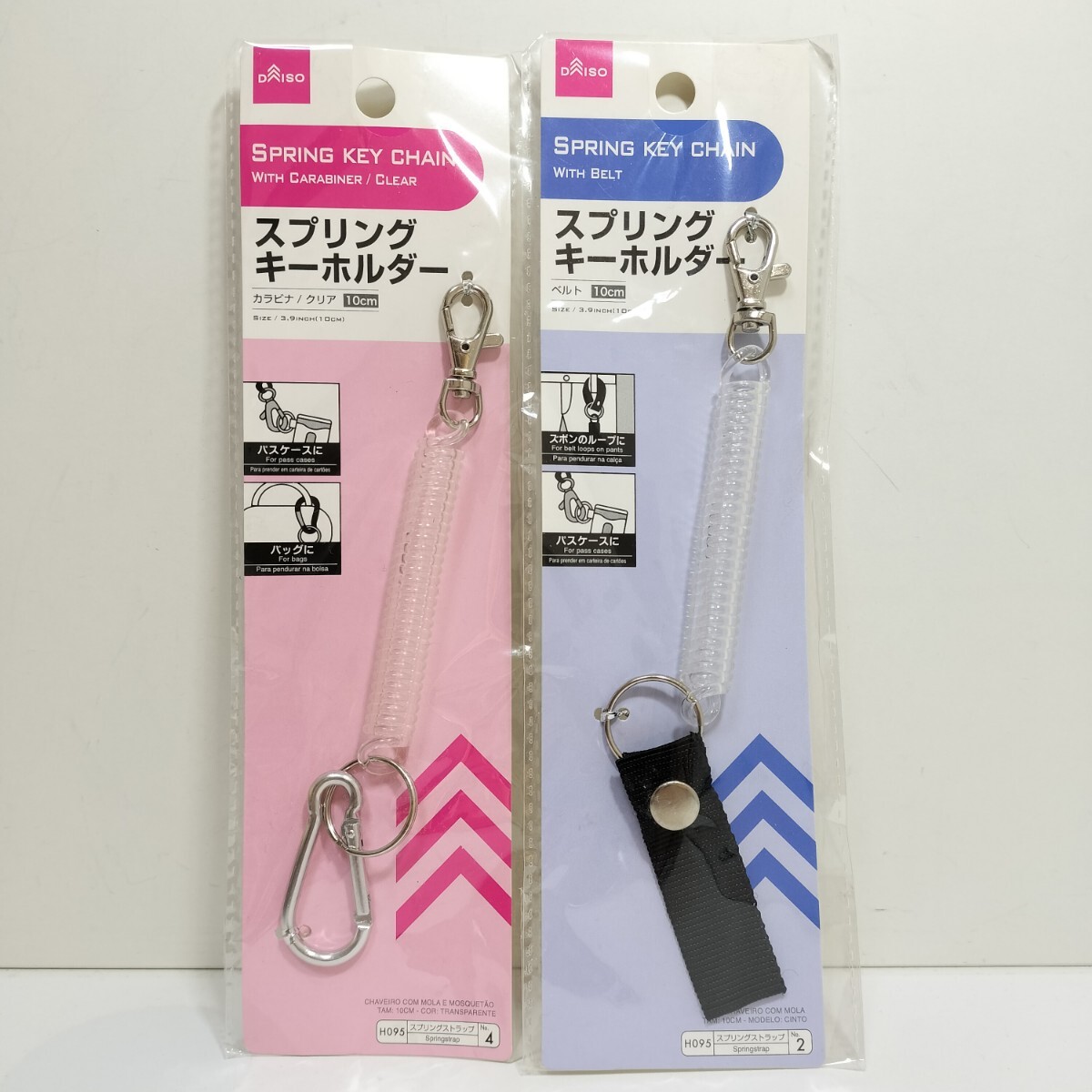 ダイソー スプリングキーホルダー ベルト & カラビナ 2点セット 未開封品登山 釣り ゴルフ ストラップ キーホルダー パスケース 財布。