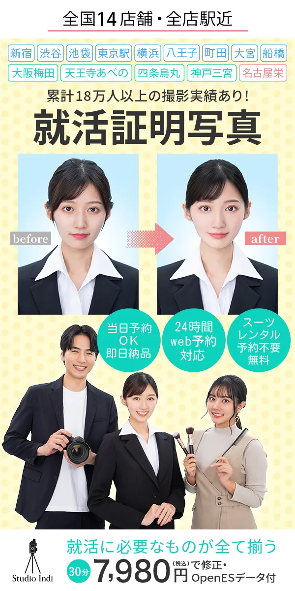 公務員志望におすすめの戦略的な就活写真の撮り方をプロが解説! 業界別の撮り方特集就活写真のスタジオインディ。