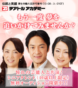 シニアタレント 40歳以上限定 無料タレントオーディション開催中!テアトルアカデミ。