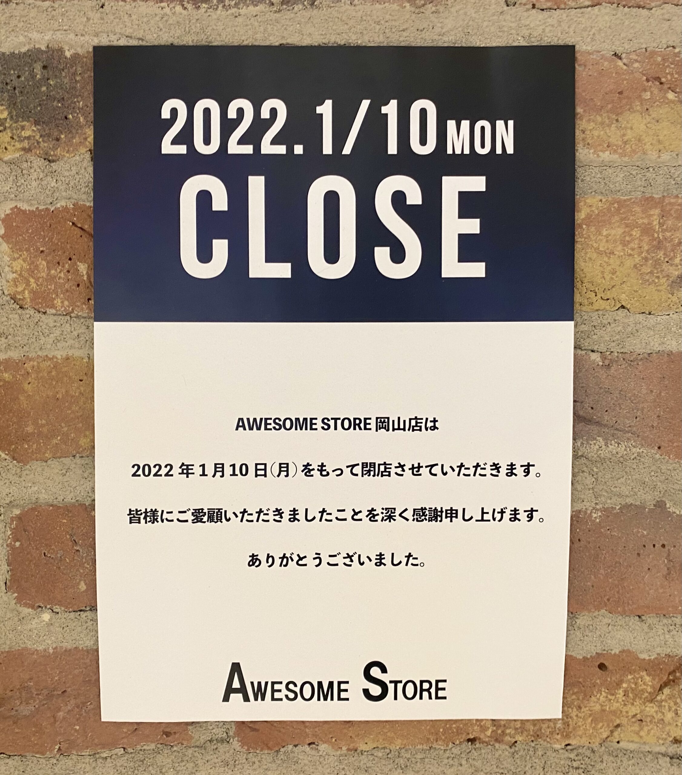 12月27日「ノンストップ」出てたAWESOME STORE オーサムストア 、岡山で閉店セールしてる。