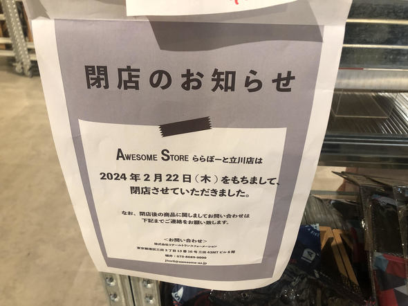閉店 明日が最後の営業日!『AWESOME STORE オーサムストアららぽーと立川立飛店』が2月22日完全閉店でホンキで最後の閉店セールしてるいいね!立川。