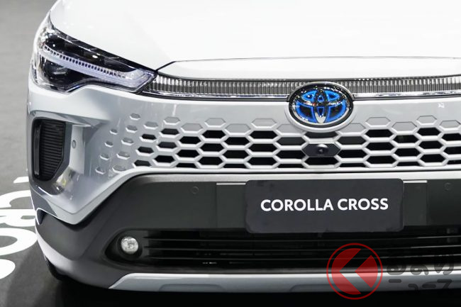 トヨタ新型「カローラクロス」実車公開! "レクサス"級に超カッコイイ! 4年ぶり顔面刷新の「新"コンパクト"SUV」バンコクで披露くるまのニュース。