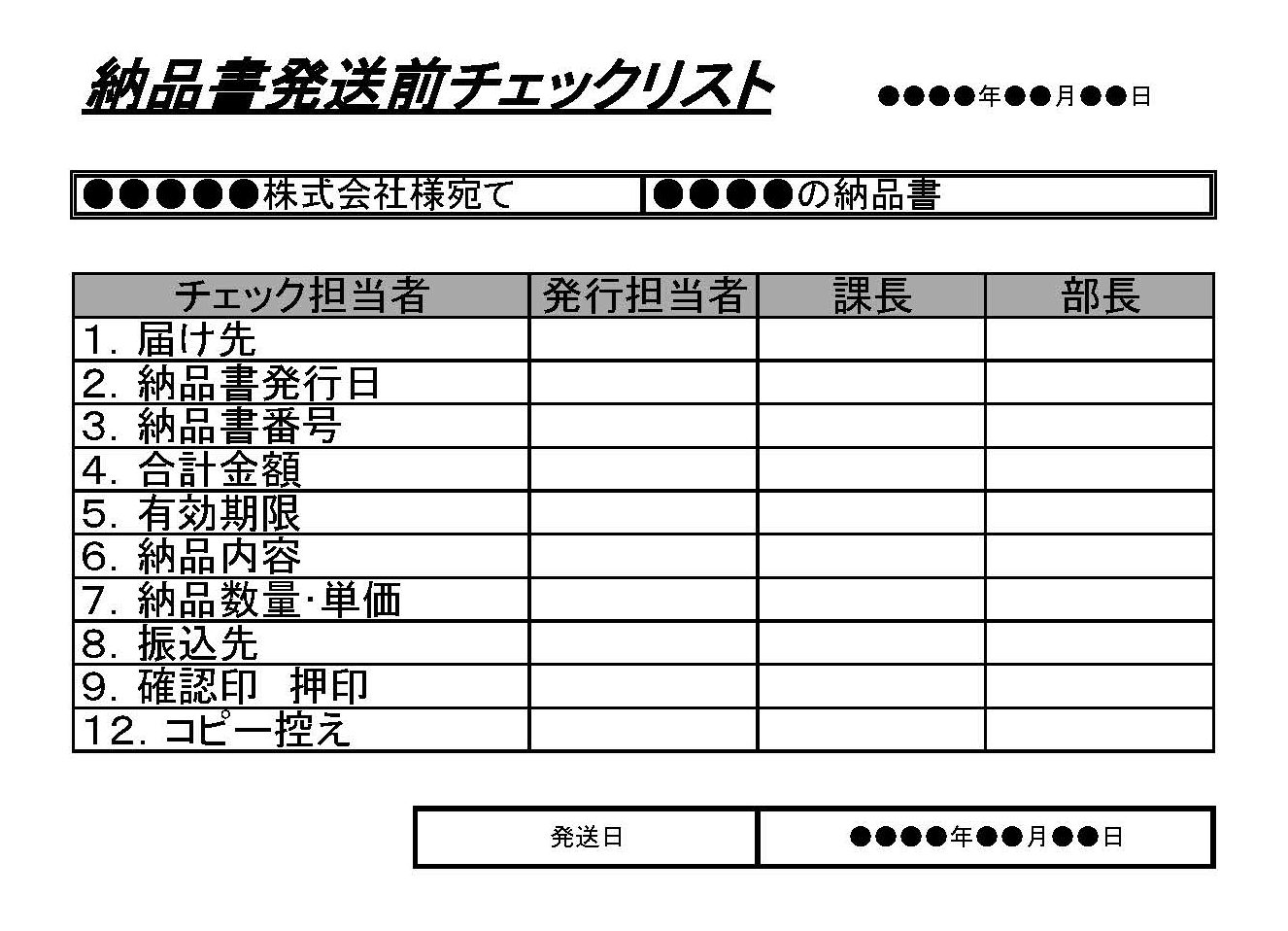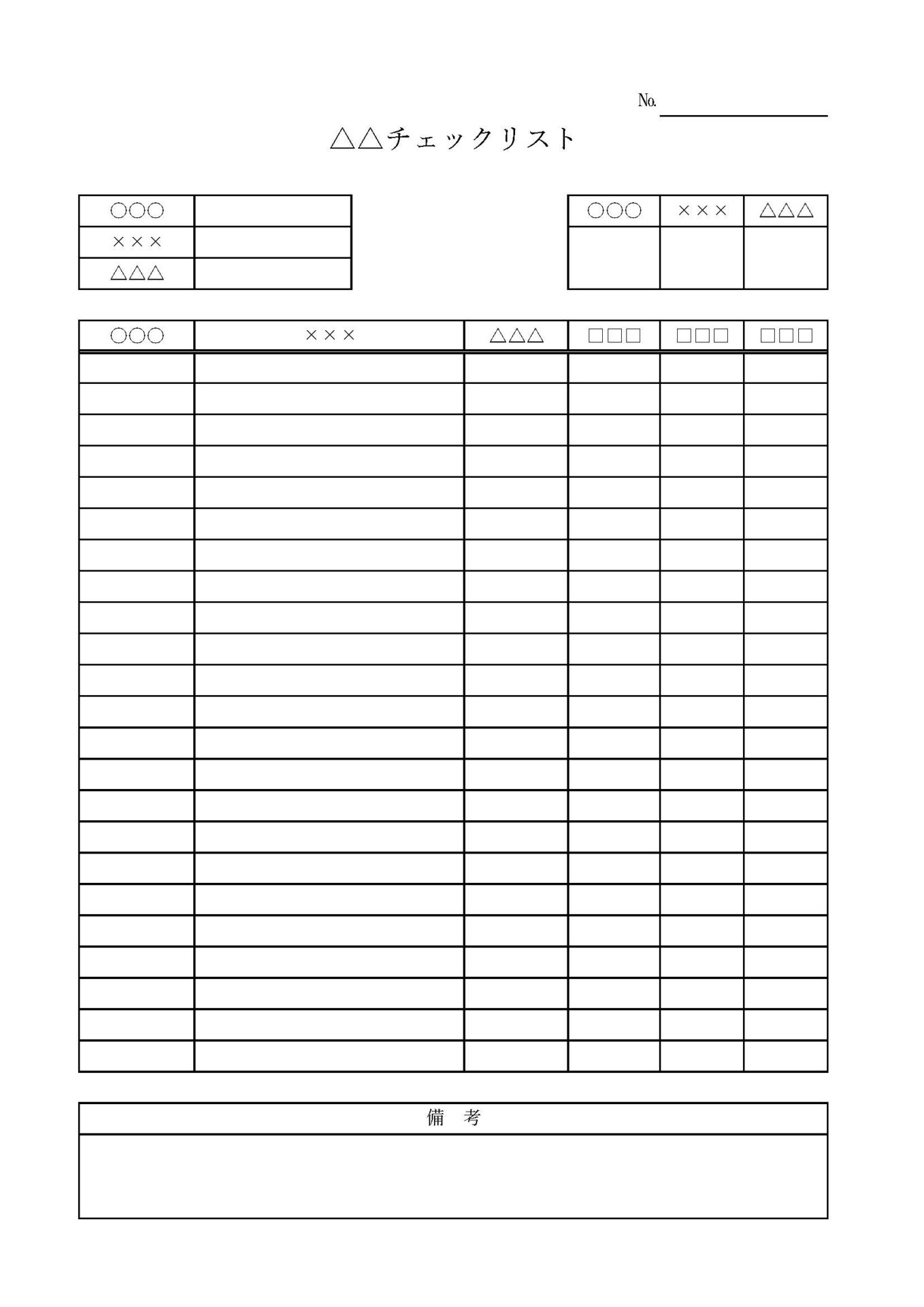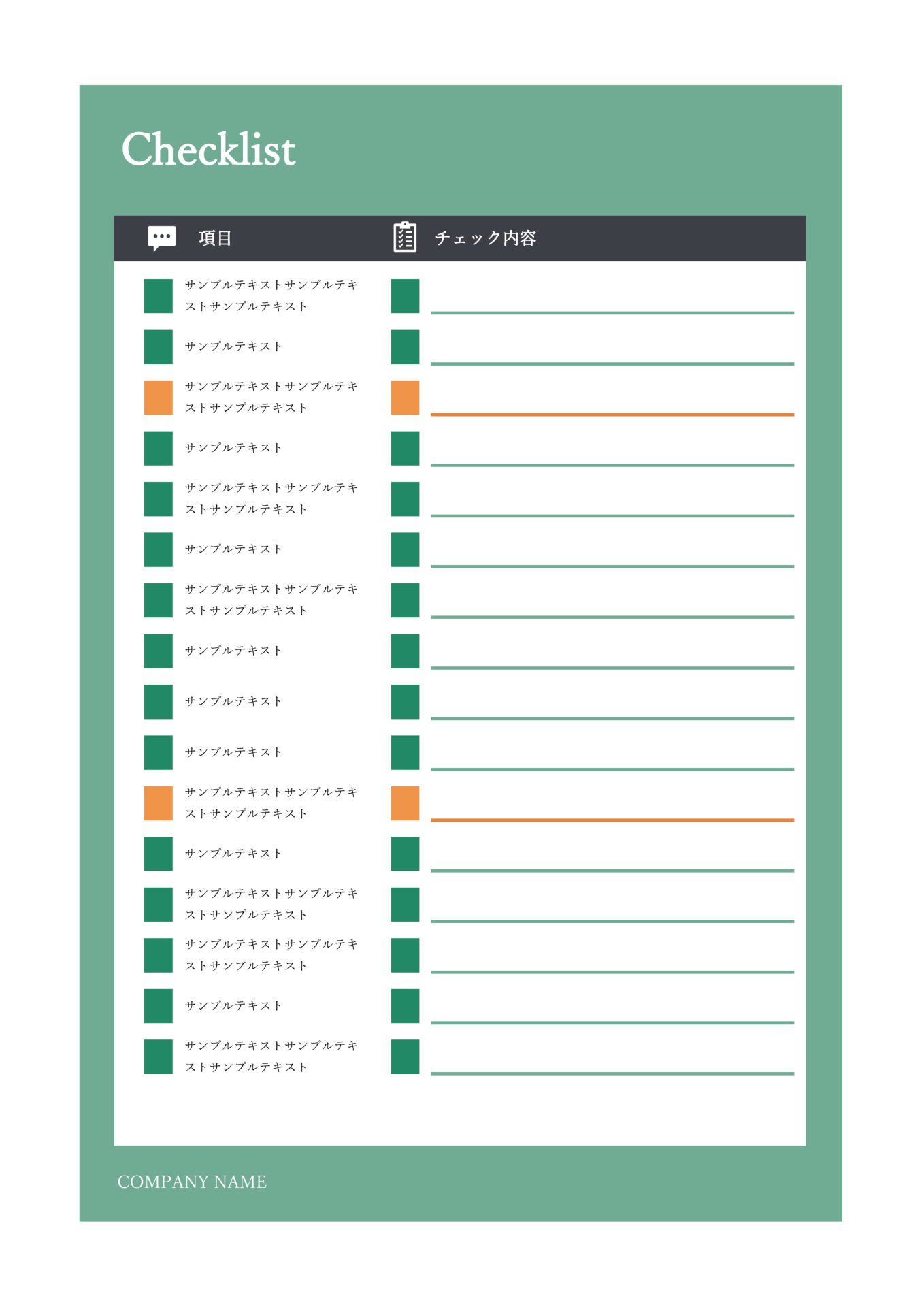 チェックリスト 記入例・ビジネス・業務・会社 シンプルな縦型の書式!ダウンロードを行う事で、Excel・Word・PDF。