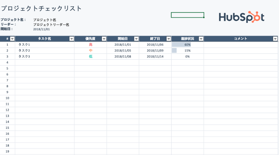 無料の プロジェクト チェックリスト テンプレート ビジネステンプレートExcelPDFHubSpot。