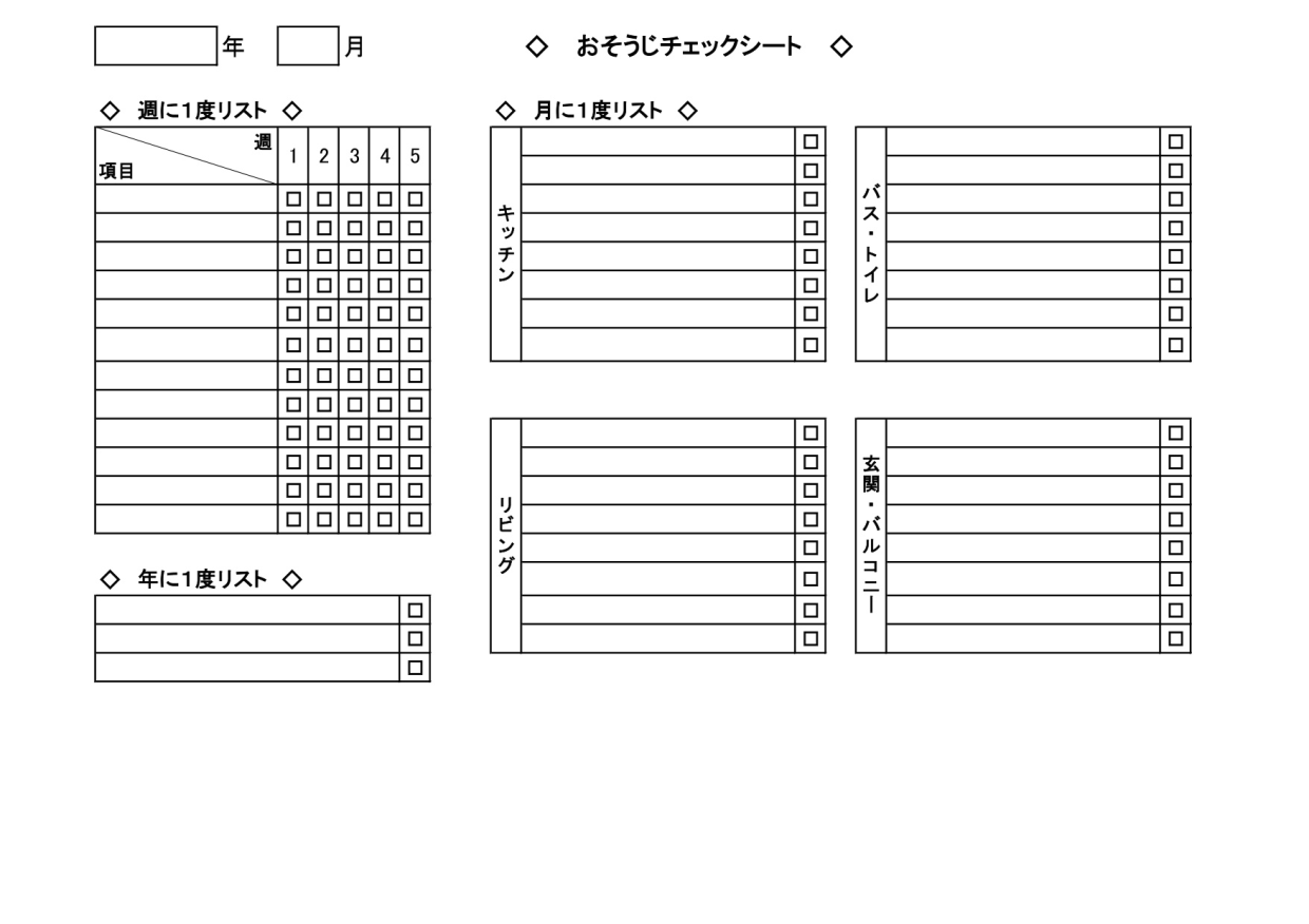 チェック表掃除や点検などに使えるExcelの雛形を無料でダウンロード - フリー雛形。