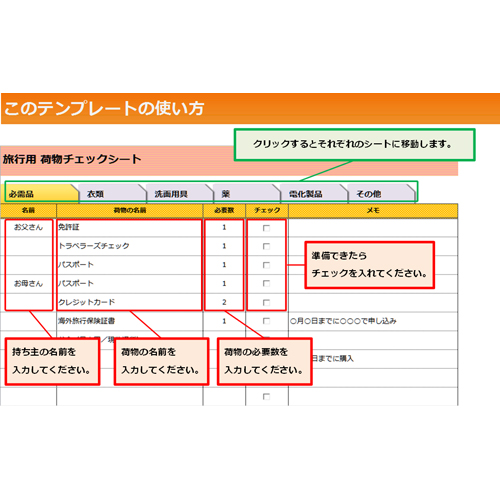 旅行準備チェック シート - 無料テンプレート公開中 - 楽しもう Office。