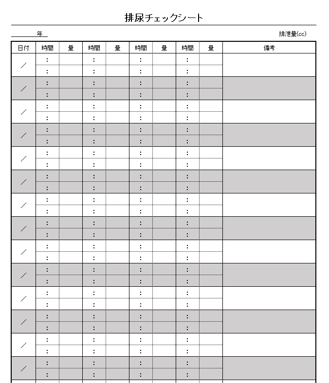 排尿チェックシートの無料テンプレート素材 エクセル無料テンプレート Mac・Windows 『ひな形ジャーナル』。