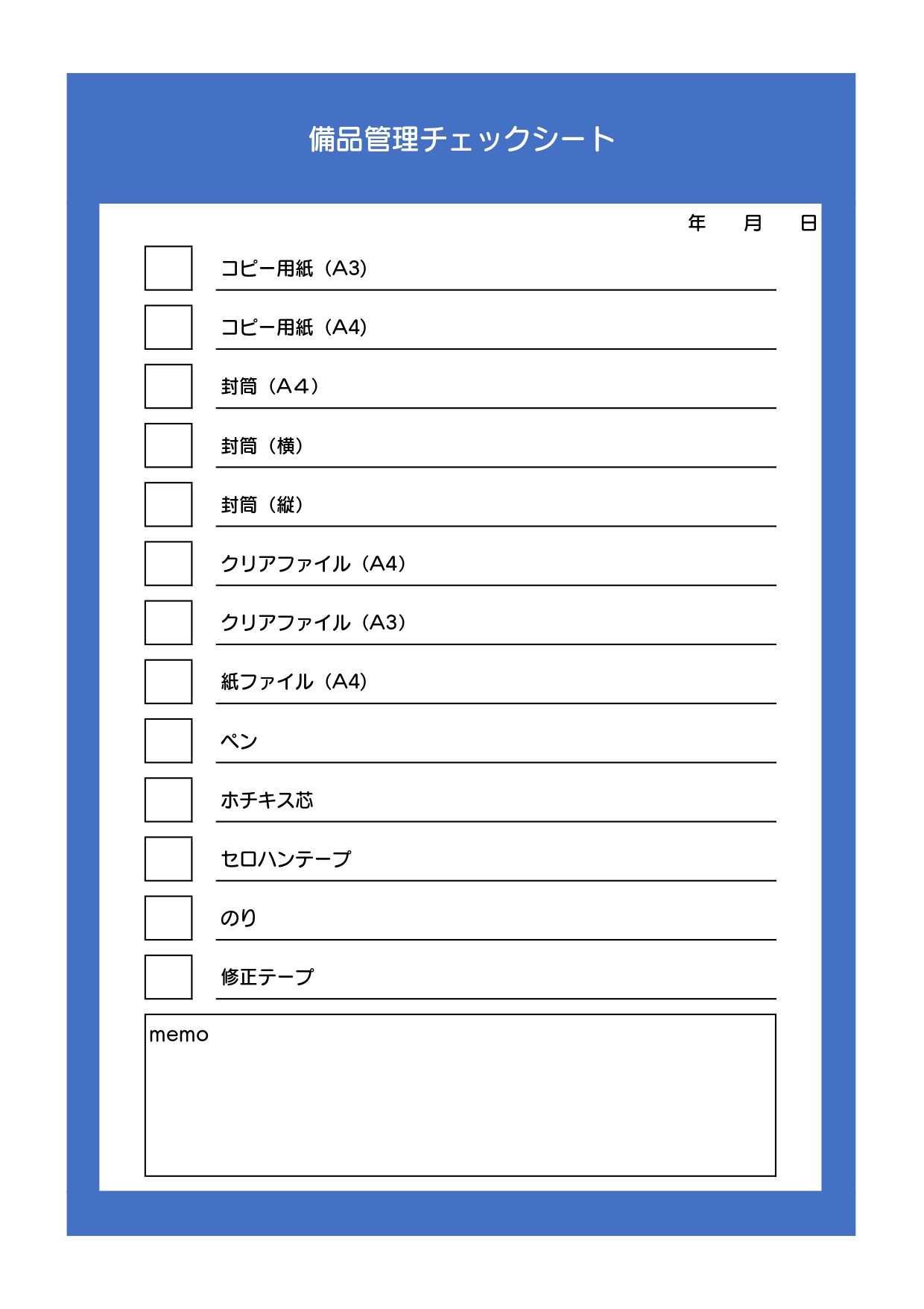 日用品の備品管理チェックシート「Excel・Wordで項目を編集・PDFを印刷して手書き対応」の無料テンプレート王の嗜み。