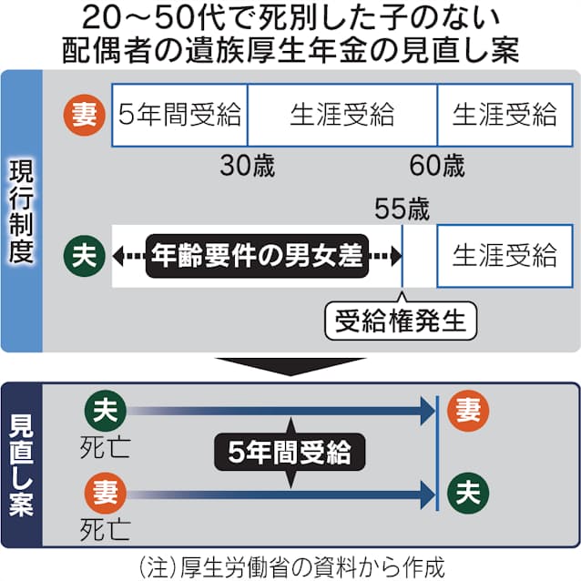 遺族年金の受給期間、一律5年に 男女差是正へ厚労省案 - 日本経済新聞。