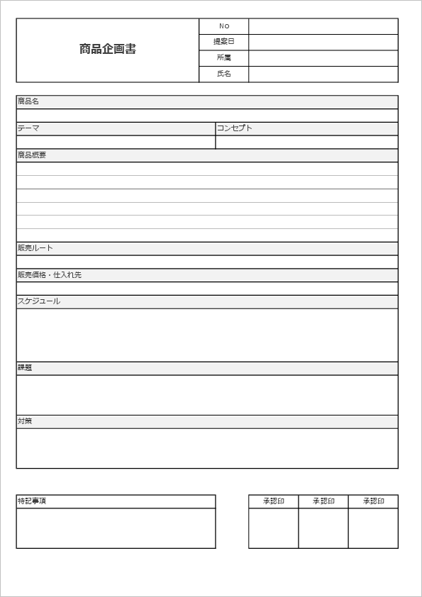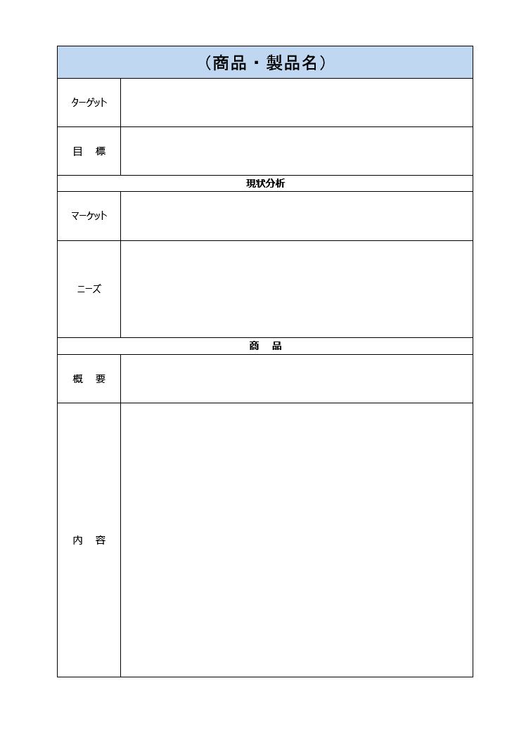商品企画書の書式・文例テンプレート Word・ワードテンプレート・フリーBiz。