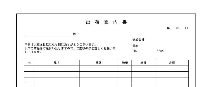 Excel・Word・PDF 出荷案内書の無料テンプレート・商品や荷物の送り状に活用!書き方簡単・サンプルにも使えるひな形可愛いだらけ。