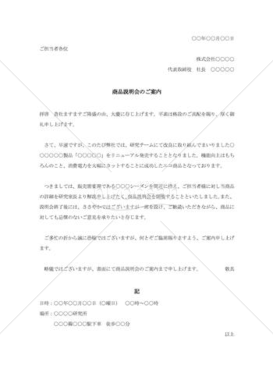 商品説明会の案内状bizocean ビズオーシャン。