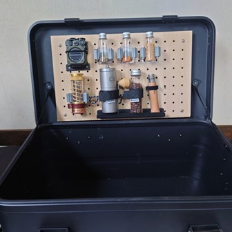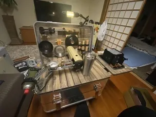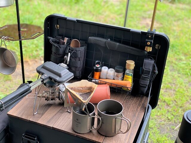ZARGESと珈琲☕ アルミコンテナを少しカスタムして収納性をあげてみました。DIYしたA38garate風天板を使って珈琲を淹れますが、かなり狭いです😂キャンプ キャンプコーヒーキャンプギア アルミコンテナアルミコンテナカスタム ツァーゲス丁髷珈琲camp camping。